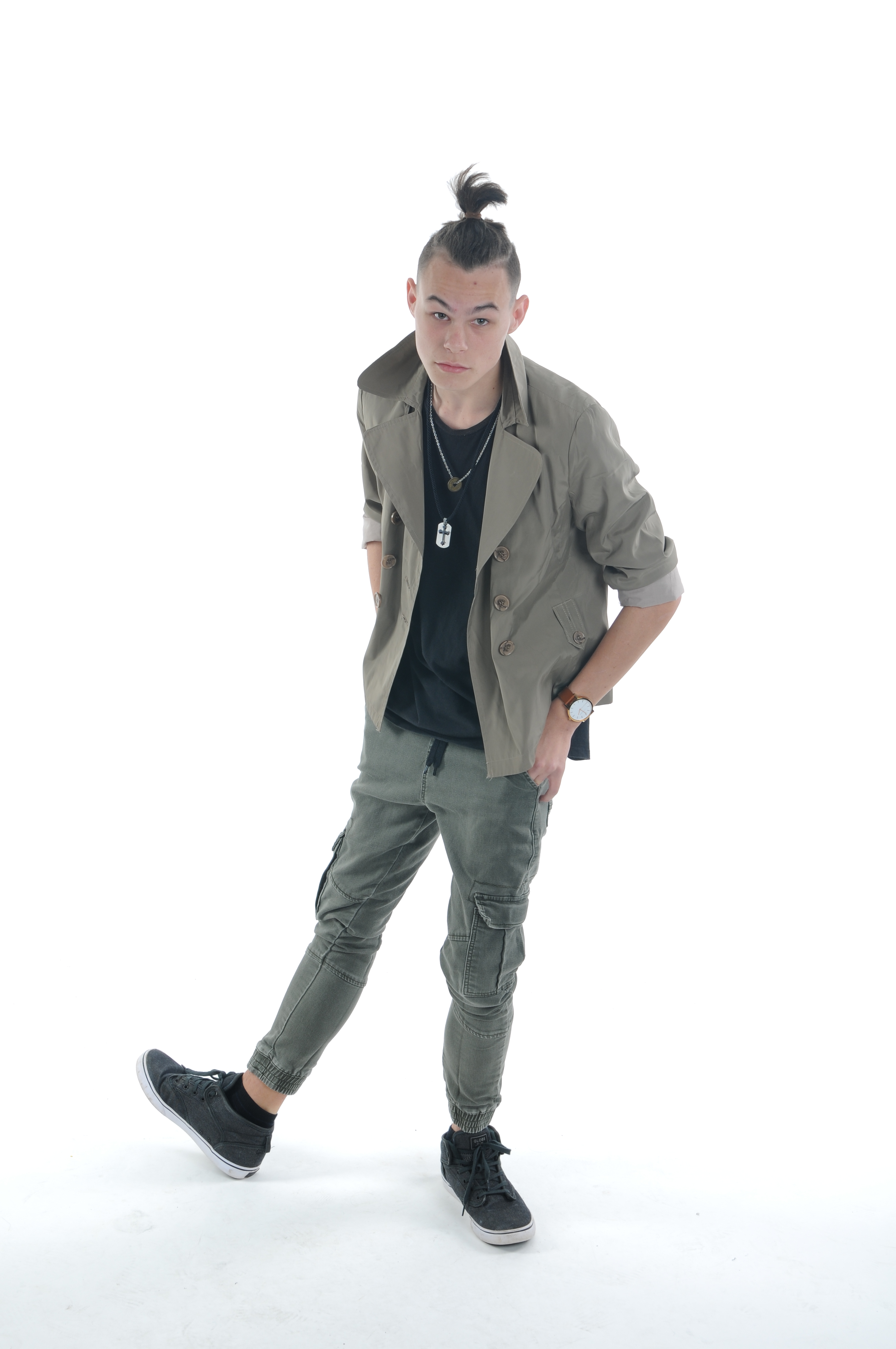 For this look I was going for an army look with the green pants with a lighter green jaket and I styled it down with sneakers. We put some accessories u could use dog tags and necklaces, brassets, watches. And I posed with lots of audited for this look